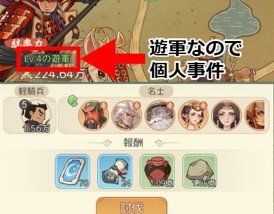 「偵察」をしたときに「軍団発見」という画面が表示されることがあります。