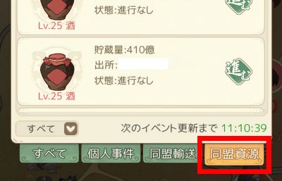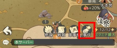 - [遠征]から同盟領地に移動して、画面下部の[事件]をタップ。