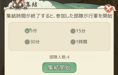 集結開始をタップして残り時間が0になると、自動的に敵軍に進軍して戦闘が始まります。