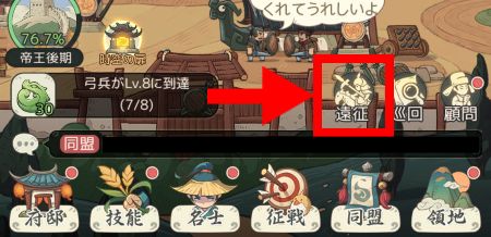 - 巡回の左にある[遠征]をタップして同盟領地に移動する。