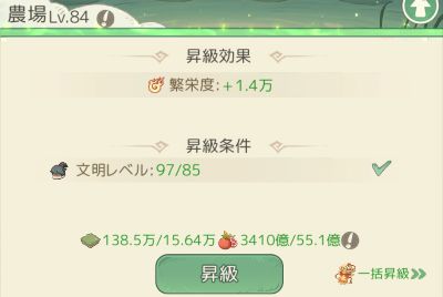 建物を昇級すると繁栄度が上がります。