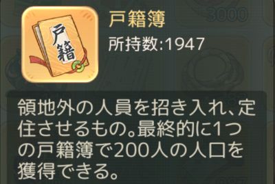 まとめると、戸籍簿とは食料を減らさずに、素早く人口を増やすことができるアイテムということになりますね。