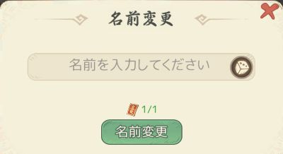 「改名札」を所持している場合は、名前変更をタップすると自動的に改名札が消費されます。