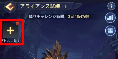 • イベント「アライアンス試練」の「バトルに助力」にヒーローを派遣する