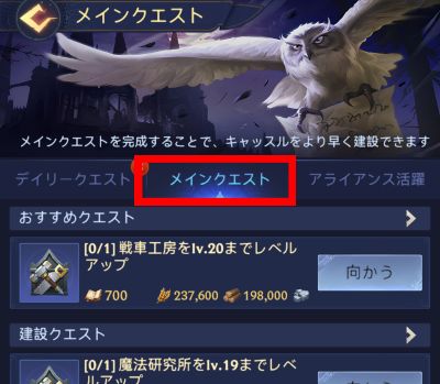 メインクエストを完了すると少しですがロードEXPを獲得できます。