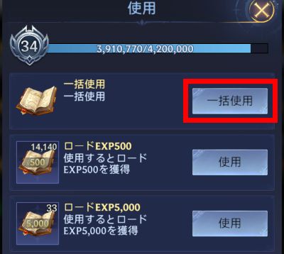 「ロードEXP」は、ロードレベルを上げるための経験値アイテムです。