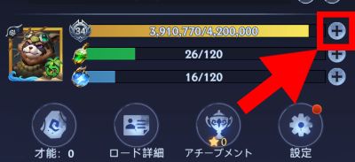 才能ポイントは、ロードレベルが上がったときにのみ付与され、「才能」のレベルアップに使用します。