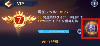1日1回、ログインするとVIPポイントを受け取ることができます。
