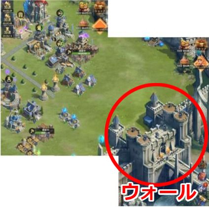 センターキャッスルが画面中央にあるとき、斜め右下に向かってスクロールすると門のようなものが見えてきます。この門がウォールです。
