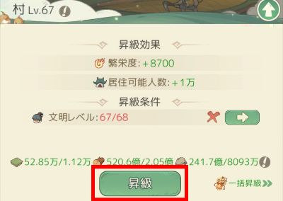 1. 「村」を昇級する。