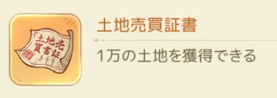 土地売買証書は、同盟商店のほかイベント等でも獲得できる場合があります。